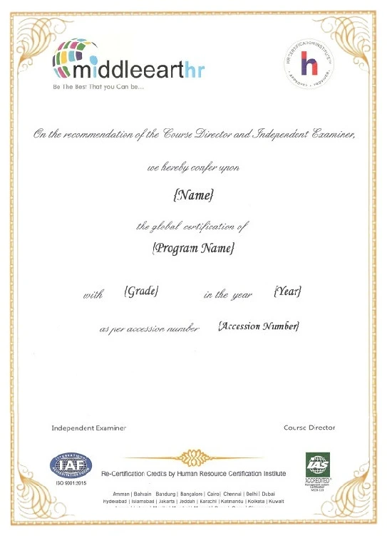 Middleearthhr Pvt Ltd is recognized by SHRM to offer Professional Development Credits (PDCs) for SHRM-CP or SHRM-SCP recertification activities.