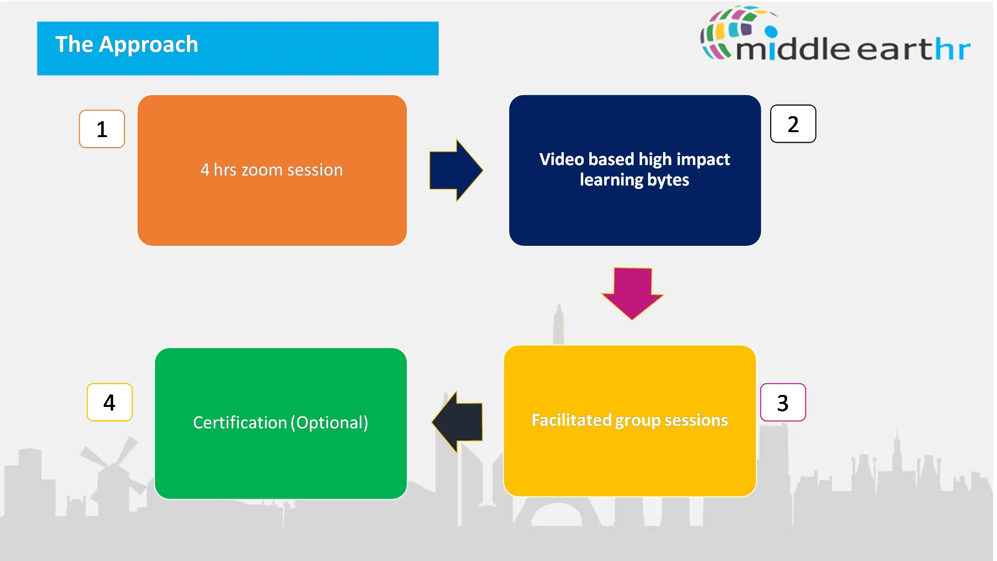 The programs are short span programs normally Half a day which integrates Video based learning with facilitated group sessions with a live trainer build around a powerful instructional design model to maximise hands on learning. The designs ensure that not a minutes is wasted, in a strong and continuous learning cycle which is oriented to maximise the online learning experience.