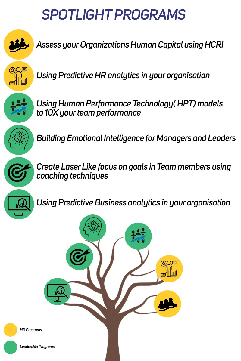 The Spotlight series is a focused sequence of 7 half a day courses conducted on Saturdays using Online classrooms with produced videos and live coaching for swift organisational learning journeys which are designed to help you master the skills you or team members need to get ahead. Each Program includes 4 hours online sessions session, video based high impact learning bytes, facilitated group sessions and culminates with a participation certificate (Optional).